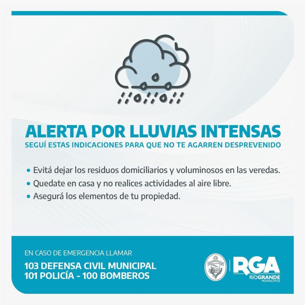 Defensa Civil Municipal informa a los y las riograndenses que fue emitida una alerta meteorológica por el Servicio Meteorológico Nacional para este domingo 2 de febrero, la cual afectaría a toda la provincia de Tierra del Fuego.