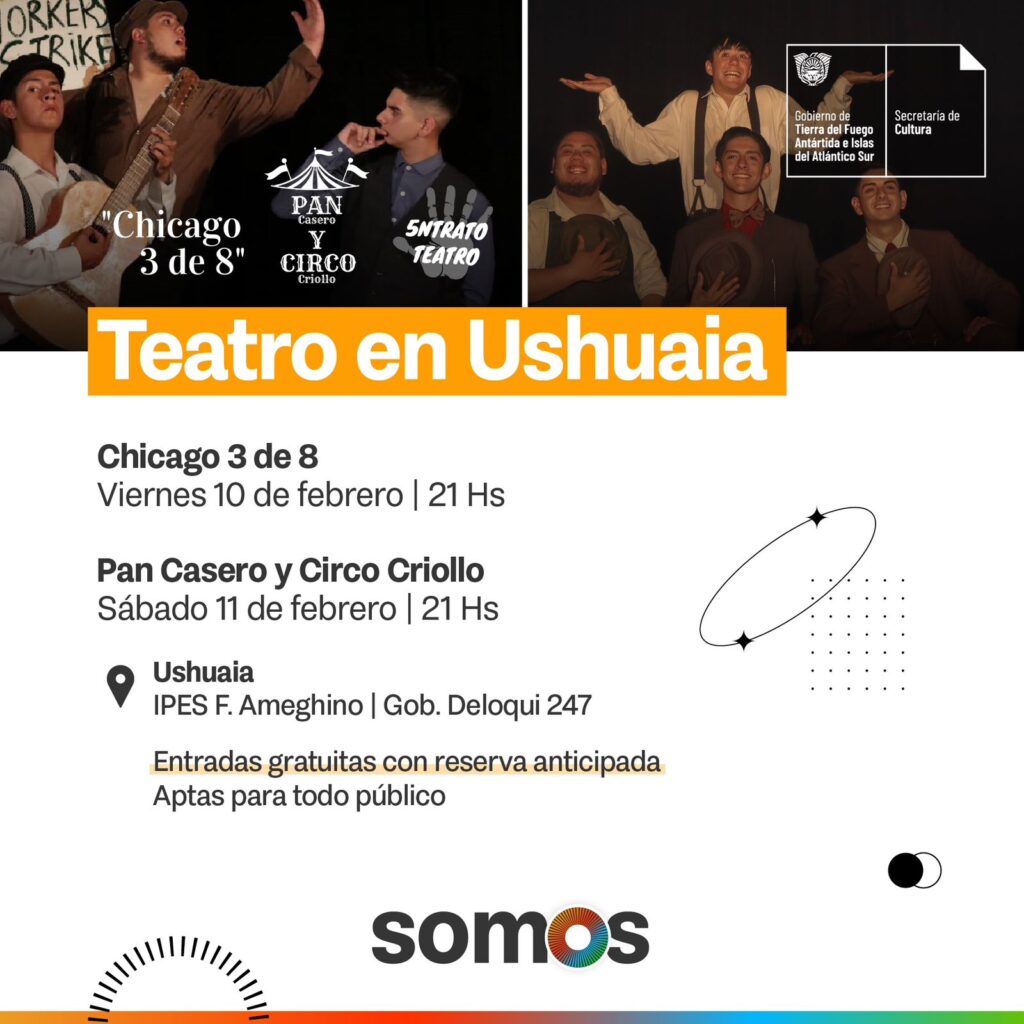 CULTURA TDF: ESTE FIN DE SEMANA SE PRESENTARÁN LAS OBRAS ‘CHICAGO 3 DE 8’ Y ‘PAN CASERO Y CIRCO CRIOLLO’ EN USHUAIA