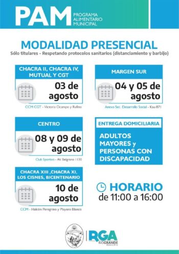 Corresponde a quienes estén empadronados en el Programa Alimentario Municipal. La distribución será de manera presencial.…