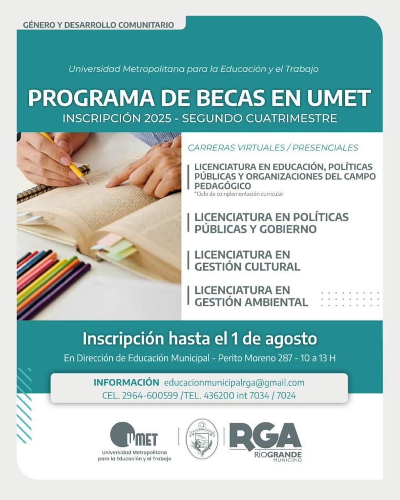 Las inscripciones se llevan a cabo de manera presencial en la Dirección de Educación, ubicada en…
