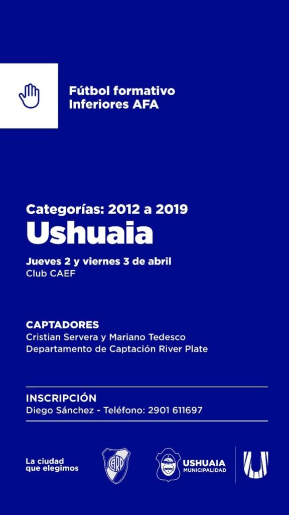 LAS JORNADAS DE CAPTACIÓN DE TALENTO DE RIVER SE REALIZARÁN EN USHUAIA
