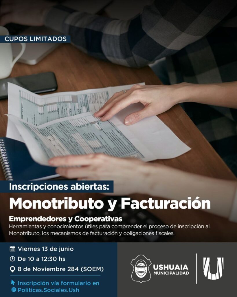 LA MUNICIPALIDAD DE USHUAIA ABRE LA INSCRIPCIÓN PARA UNA CAPACITACIÓN GRATUITA SOBRE MONOTRIBUTO Y FACTURACIÓN