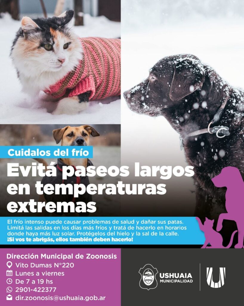 LA MUNICIPALIDAD DE USHUAIA RECUERDA LA IMPORTANCIA DE PROTEGER A LAS MASCOTAS DEL FRÍO INVERNAL