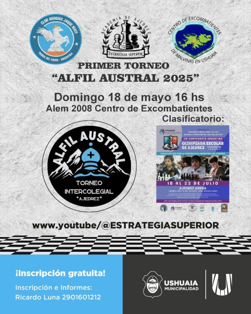 LA MUNICIPALIDAD DE USHUAIA ACOMPAÑARÁ ESTE DOMINGO 18 EL PRIMER TORNEO “ALFIL AUSTRAL 2025”