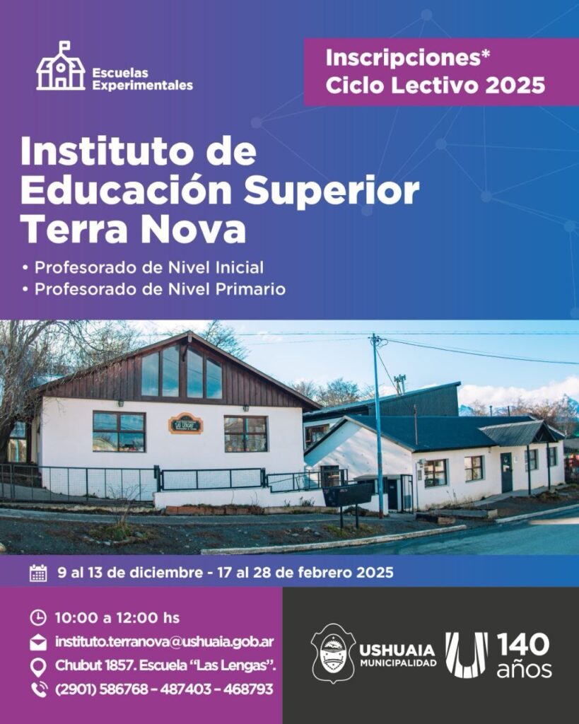 ABREN LAS INSCRIPCIONES AL CICLO LECTIVO 2025 DEL INSTITUTO DE ENSEÑANZA SUPERIOR “TERRA NOVA”