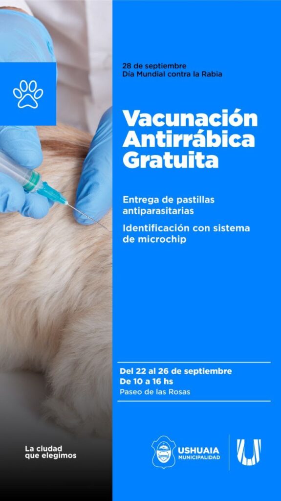 LA MUNICIPALIDAD DE USHUAIA IMPULSA LA SEMANA INTERNACIONAL CONTRA LA RABIA CON UNA CAMPAÑA DE VACUNACIÓN GRATUITA PARA PERROS Y GATOS