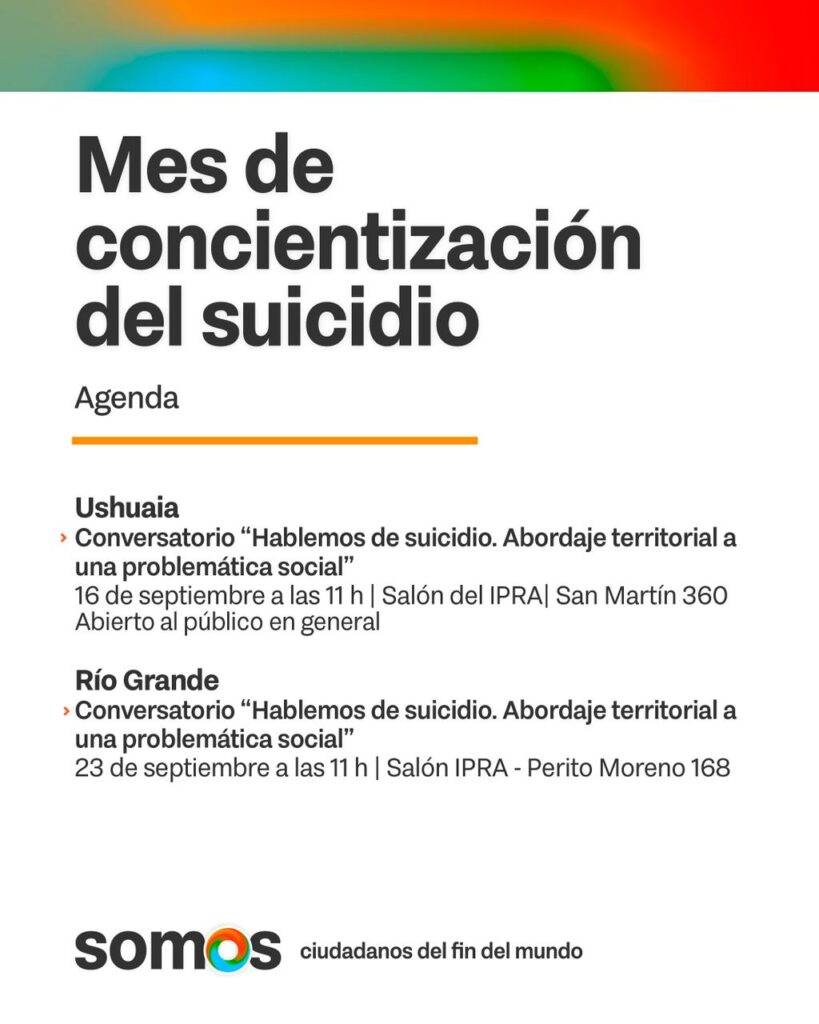 MES DE CONCIENTIZACIÓN DEL SUICIDIO: SE REALIZARÁN ESPACIOS DE DIÁLOGO Y CONVERSATORIOS EN LAS TRES CIUDADES