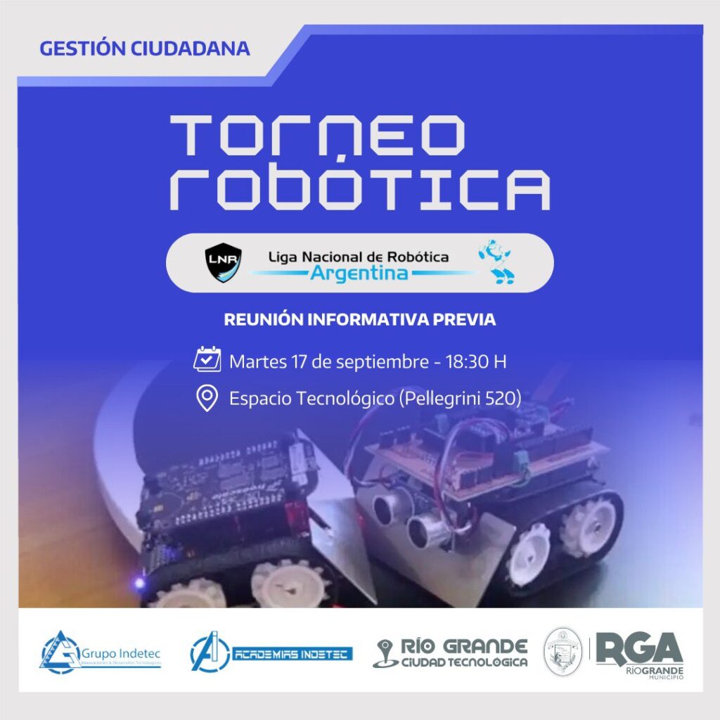 Los amantes de la robótica se preparan para una nueva edición del Torneo Nacional de Robótica. Como antesala, este martes 17 de septiembre desde las 18:30 horas se llevará a cabo una charla informativa en el Espacio Tecnológico (Pellegrini 520) destinada a todas las personas interesadas en la robótica competitiva, así como a instituciones públicas y privadas. La charla, organizada por el Municipio y el Grupo Indetec estará a cargo de Pablo Cardoso, coordinador de la zona austral de la Liga Nacional de Robótica (LNR) y servirá para explicar los detalles y modalidades del torneo.