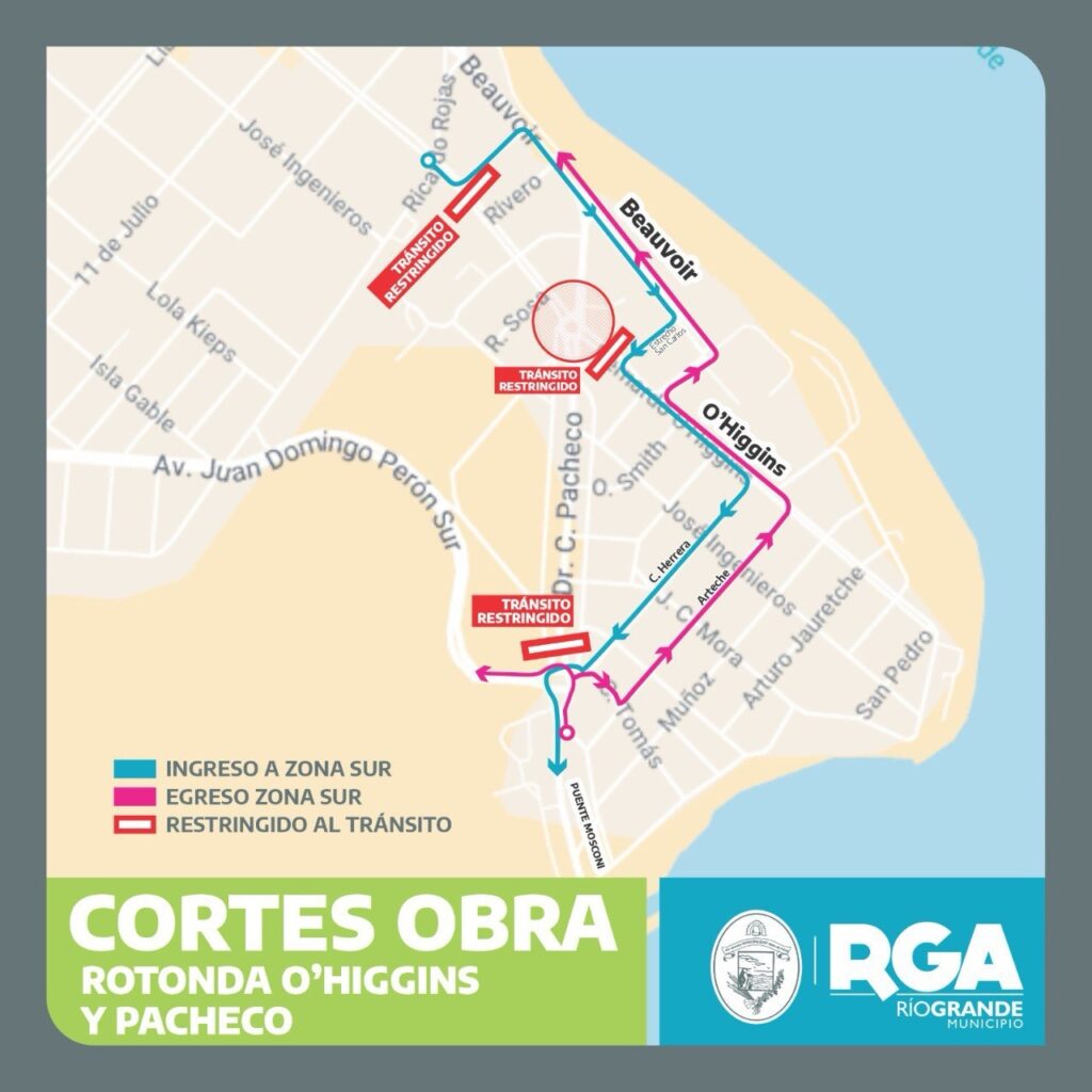 En virtud de las labores, el Municipio informa a los vecinos y vecinas que se restringirá el tránsito sobre calle O’Higgins en sus intersecciones con las arterias Rivero y Estrecho San Carlos, como así también en Pacheco a la altura de calle Vidal.