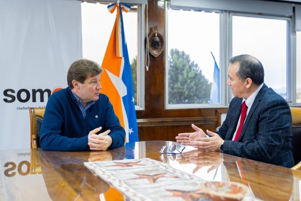 El Gobernador de Tierra del Fuego AIAS, Gustavo Melella, mantuvo un encuentro con el Cónsul de la República de Chile en Ushuaia, Rodrigo Toledo, durante el cual dialogaron acerca de agendas en común para profundizar las relaciones de cooperación entre el país trasandino y la provincia.