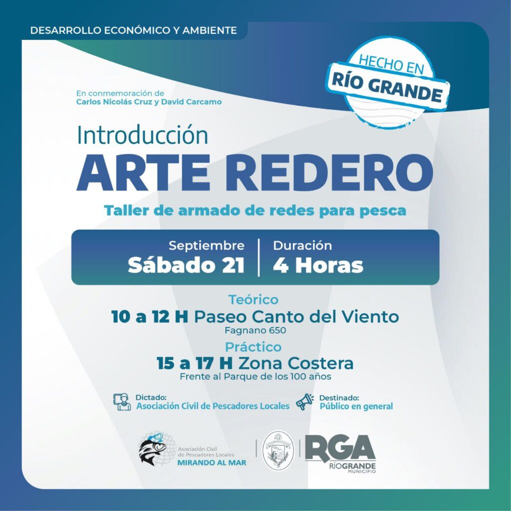En tal marco, el Municipio junto a la Asociación Civil de Pescadores Locales «Mirando al Mar» invita a la comunidad en general a participar este sábado 21 de septiembre del taller introductorio «Arte Redero».