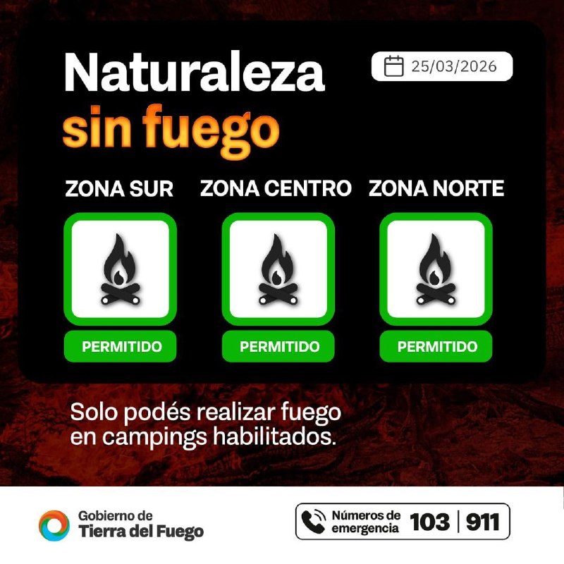 El día de hoy, en las ciudades de Río Grande, Tolhuin y Ushuaia, está permitido hacer fuego únicamente en campings habilitados.