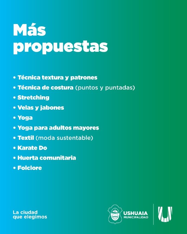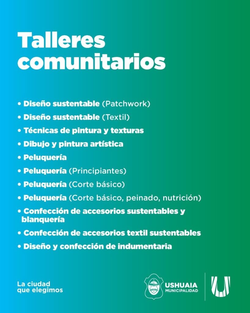 La Municipalidad de Ushuaia, a través de la Subsecretaría de Inclusión Social, informa que se encuentran abiertas las inscripciones online para los talleres que se dictarán en los distintos centros comunitarios de la ciudad.