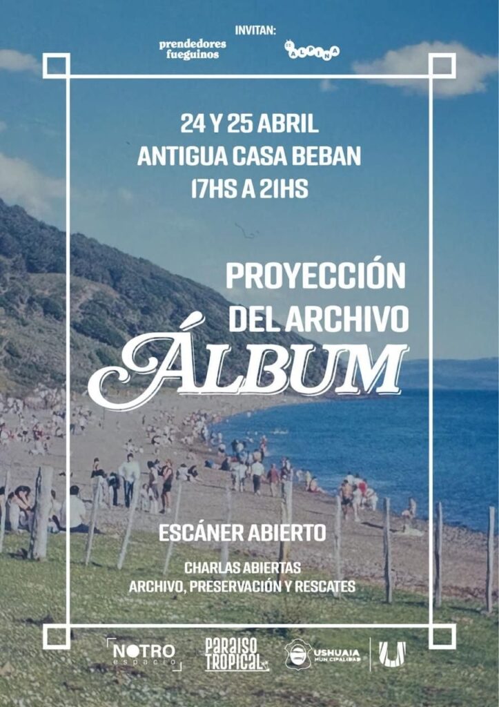 La Secretaría de Políticas Ambientales, Culturales y Educativas de la Municipalidad de Ushuaia acompañará este viernes 24 y sábado 25 de abril, entre las 17:00 y 21:00 horas en la Antigua Casa Beban, las dos primeras jornadas de la propuesta “Proyección del Archivo Álbum”, una iniciativa de Prendedores Fueguinos y Feria Alpina que busca recopilar imágenes de la vida en Tierra del Fuego desde la década del 80′ hasta el 2000.
